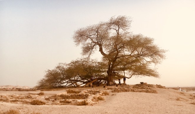The guide book says it’s one of the best-known natural wonders of Bahrain. An enormous acacia tree, widely believed to be 4,000 years old, growing in an otherwise barren desert, it’s source of water a mystery, it’s growth a miracle.