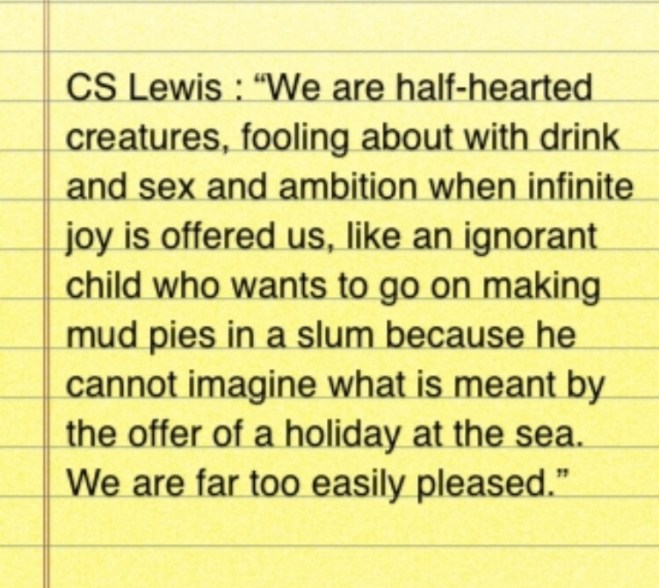 Nor does God seek to shame us. Instead, he invites us to see the life he would prefer for us, the life that is often so much better than the one we choose for ourselves. One of my favourite quotes from C.S.Lewis explains this so well: