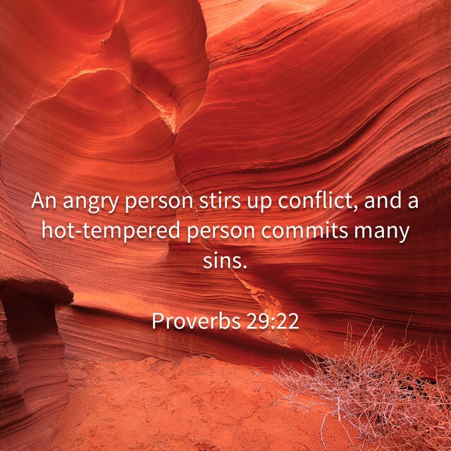 The Bible warns us repeatedly about anger. I am not talking about righteous anger- the sort of anger that is stirred by injustice and which, historically, has achieved great things, such as the abolition of slavery. The same type of anger Jesus demonstrated when he overturned the tables of the merchants who were making money in the temple by exploiting people (Matthew 21:12-17, Mark 11:15-19 and Luke 19:45-48).