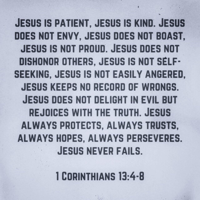 Try replacing the word ‘Love’ for your own name. I find when I do this it shows me the areas that I know God is still working on! Alleluia!