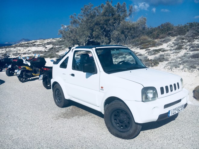 We were doing a beach crawl along the coves and cave of northern Milos when disaster struck. We were exploring Sarakiniko, a beach so beautiful, so unusual that we hadn’t been able to reach it when we first drove to it in the morning due to the crowds of people, picnics and parasols.