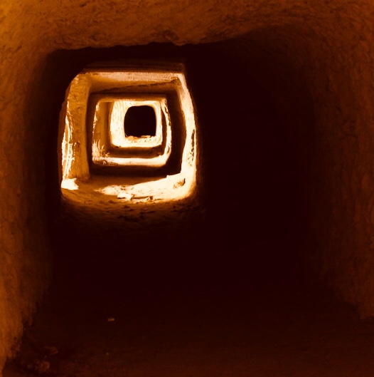 Once inside, knowing I’ve never recovered from the sewer scenes in Indiana Jones’ Last Crusade, my daughter joked that the labyrinthine tunnels might be home to rodents. I panicked at the thought. We were in total darkness but I could see a little doorway up ahead, casting a perfect rectangle of Greek sunshine on the tunnel floor.