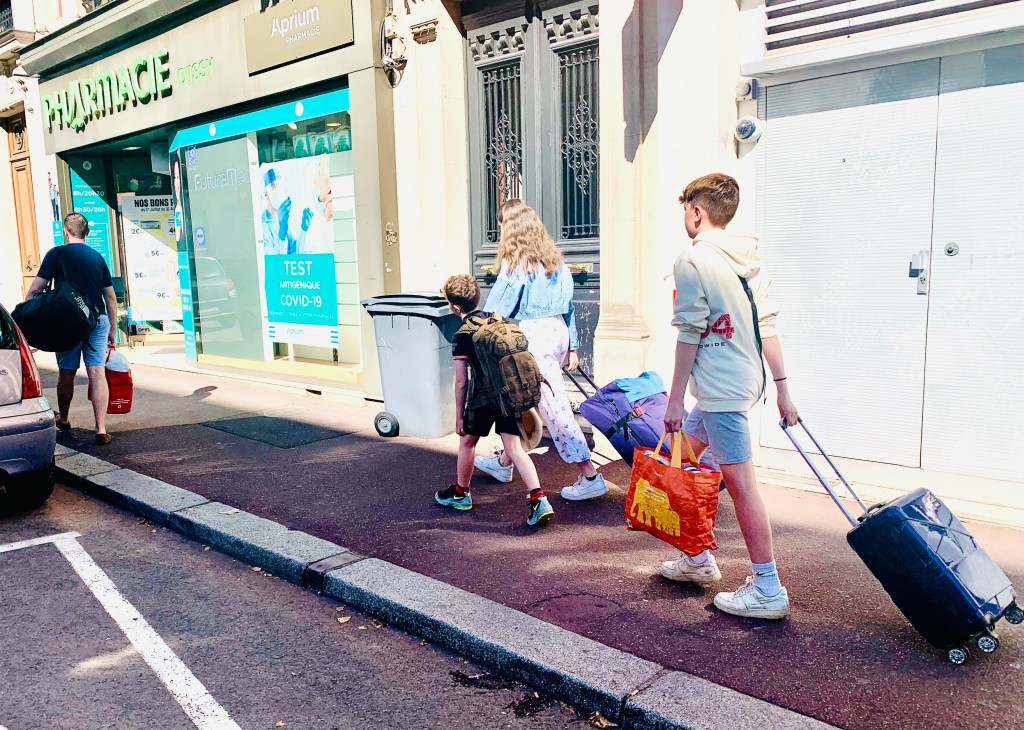 My husband therefore instructed us last night, as we prepped for our packing, that our allowance was basically a change of undies and some swimmers for a holiday of almost 3 weeks, speaking as if this wasn’t a situation all of his making. My daughter and I were told we must share a bag (an allowance less generous than an budget airline) as we will be spending a few nights away from this travel Scrooge. Inevitably, that bag has been filled so full it takes a two-man lift to move it anywhere. I can’t see how the pair of us will manage around the Paris Metro and on tbe TGV but we stayed within the rules so we and the bag were allowed on the trip. Interestingly, the picnic bag my husband prepared for the journey is almost as big and heavy as the rest of our luggage.